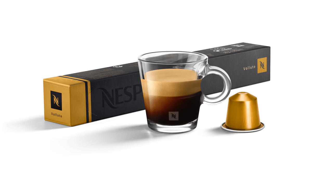 Like a fresh, oven-baked brioche, Nespresso Volluto has an irresistible perfume and comforting sweet biscuit notes with a touch of fruitiness that enlivens the blend.