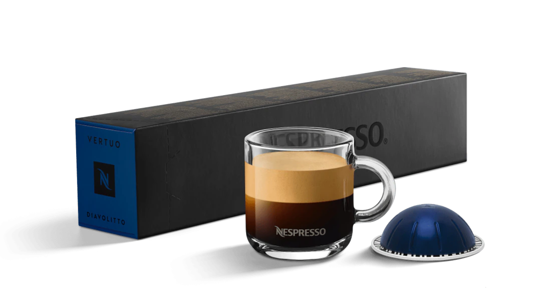 This Vertuo coffee capsule is a highly roasted Robusta and Arabica coffee blend. We split roast so that each coffee’s origin characteristics stay at play.