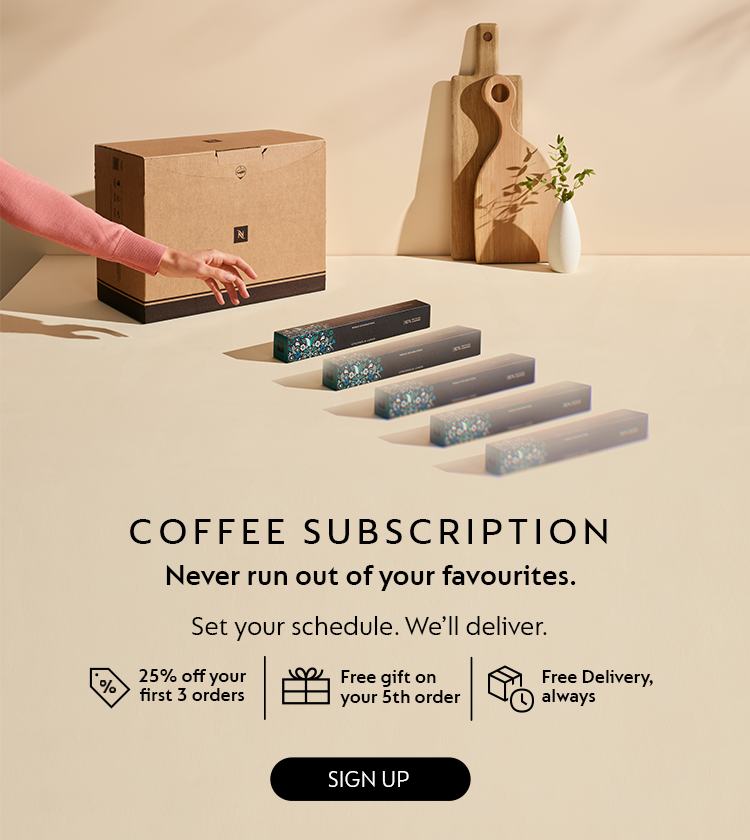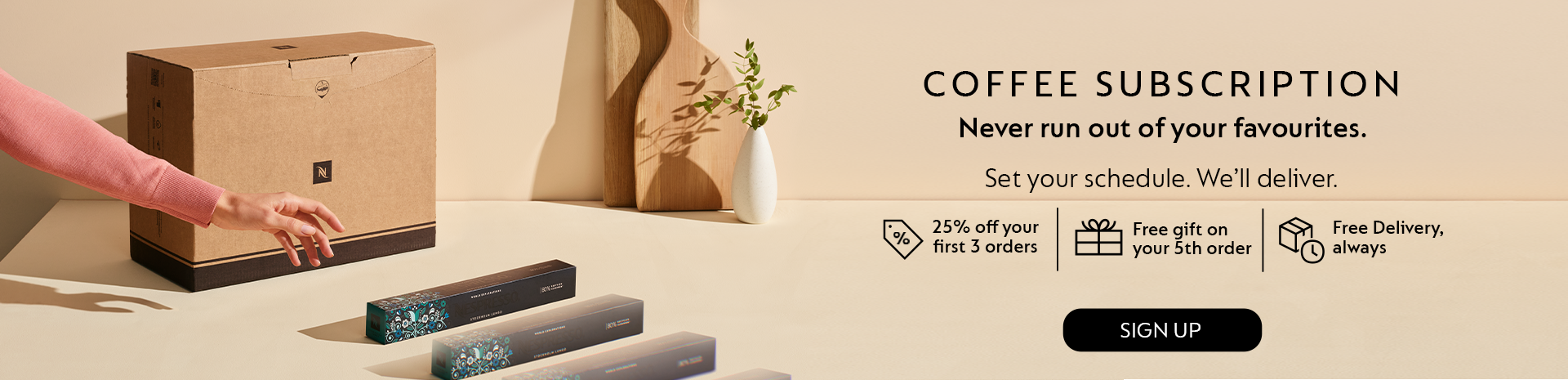 Say goodbye to last-minute coffee runs! With Nespresso Coffee Subscription, you can have your favourite coffees delivered right to your doorstep, exactly when you want them. It’s super easy to set up and manage, with no strings attached. Just choose your coffees, and we’ll handle the rest!