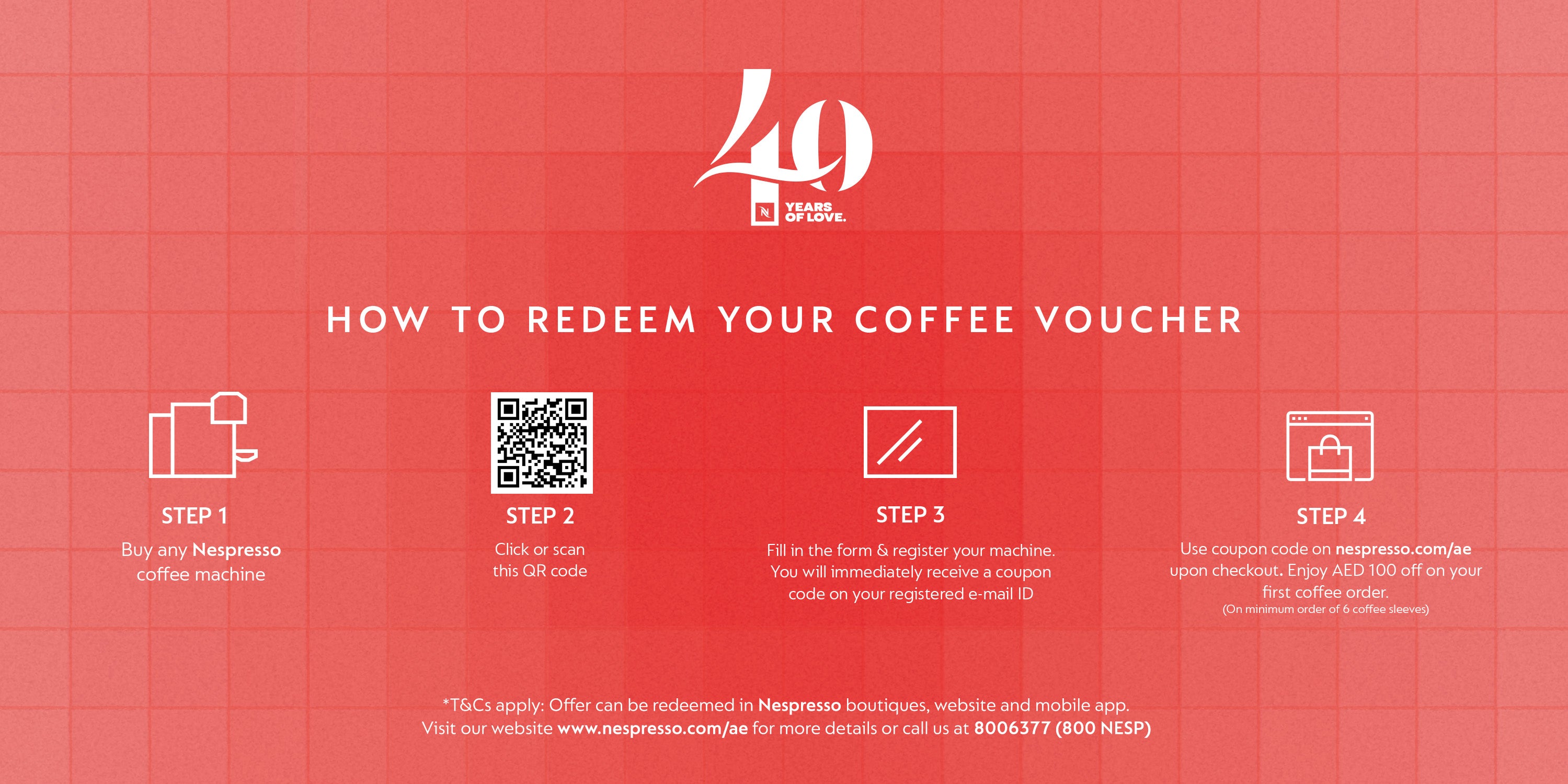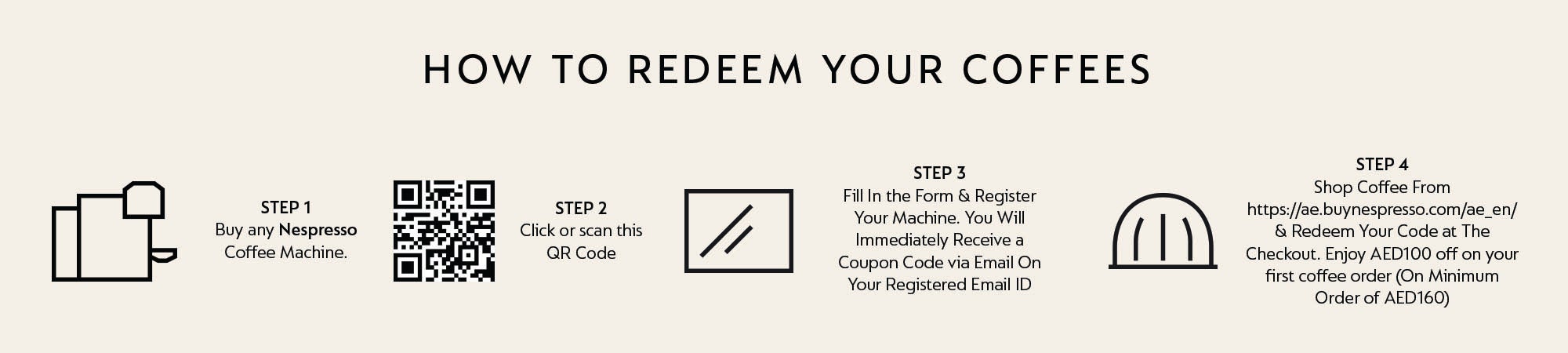 - A Nespresso member account is required to redeem the offer on ae.buynespresso.com or Nespresso mobile app.