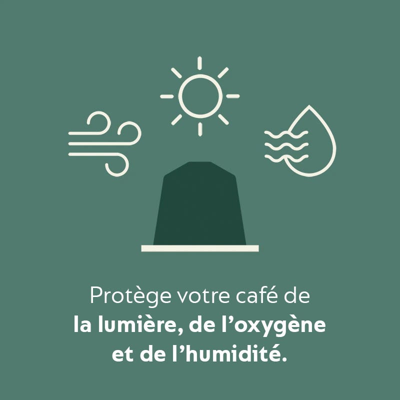 Nespresso a choisi l'aluminium pour ses capsules parce qu’il préserve la qualité du café et est recyclable à l’infini. Il présente de nombreux avantages fonctionnels et environnementaux. Nous ne pouvions pas choisir de meilleur matériau pour nos capsules.