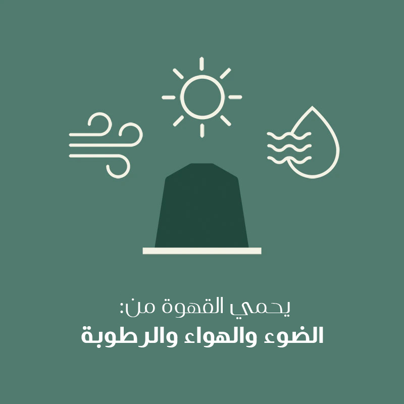 تستخدم نسبريسو الألمنيوم لصناعة الكبسولات لأنه يحافظ على جودة القهوة ولأنه قابل دائماً لإعادة التدوير. كما يتميز الألمنيوم بالعديد من الفوائد الوظيفية والبيئية التي تجعله خيارا ممتازاً لكبسولاتنا.