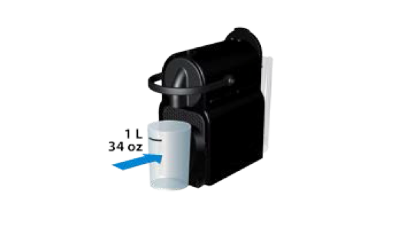 3. Fill the water tank with 0.5 L of potable water and add 1 Nespresso descaling liquid sachet.