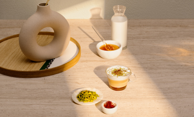 - Garnish with crushed pistachios and saffron.