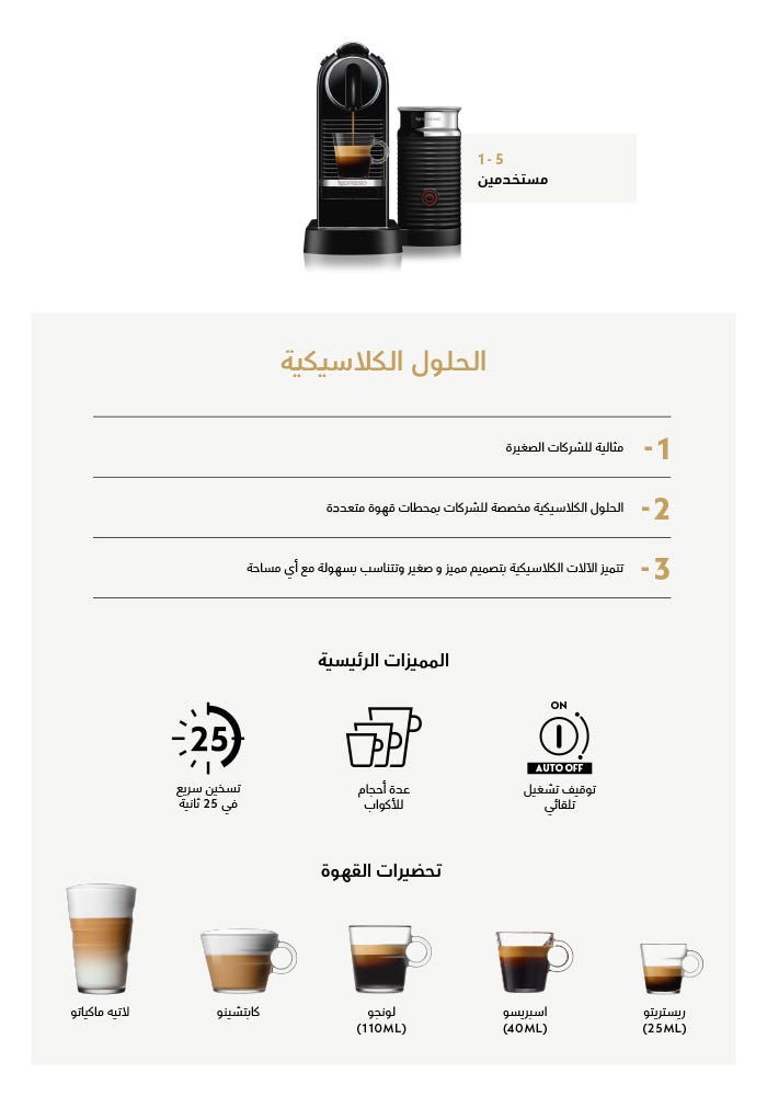 اكتشف حلول الماكينات الكلاسيكية للشركات الصغيرة التي ترغب في الحصول على ركن واحد أو أكثر من ركن القهوة في العمل.